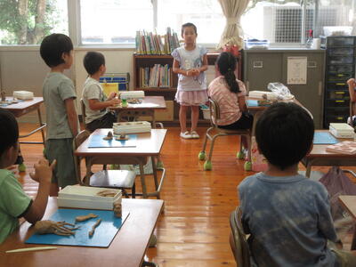 9月5日(木)、1年生は粘土を使い制作し、一人ひとり感想を発表しました。