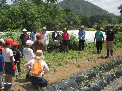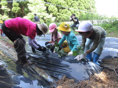 6月3日(月)、全校児童が参加する芋の苗植えを、お米先生でもある福山さんにお世話になり行いました。金曜日から月曜日になったにもかかわらず、地域学校協働活動推進員の荒牧さんにより、たくさんの学校応援団のボランティアの方々にサポートしていただきました。婦人会の方々や、民生委員の方々など、保護者も含めて支援を頂きました。たいへんありがとうございました。