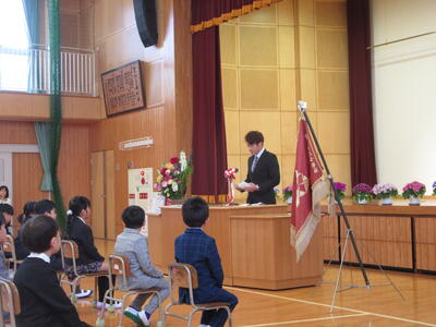 就任式では、新しく転入された先生方の紹介や挨拶がありました。