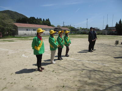 4月10日(水)、交通安全母の会から地域の方々や南関町の交通指導隊の方々にご協力いただき、南関第三小学校で交通安全教室を行いました。