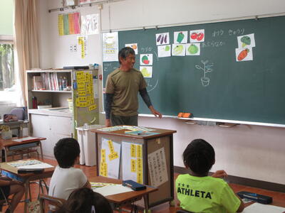 5月7日(火)、福山さんに野菜のお話を聞き、野菜畑に植えていきました。