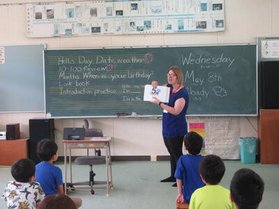 5月8日(水)、2年生はコリーン先生と英語活動を行いました。
