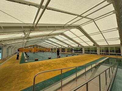南関町B&G海洋センターでプール開きです。低学年、中学年、高学年に別れてバスにお世話になり移動して授業を行います。