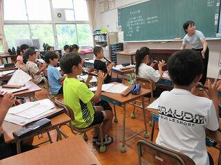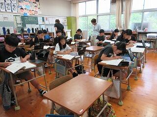 6年生は、文章を説明文の型に合わせて書き換える、という活動をしていました。「~は、~です。例えば、~」のような感じです。みんな、「う~ん。」と頭をひねりながら一生懸命考えていました。