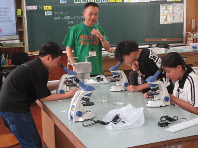 9月2日(月)、6年生は理科授業で顕微鏡を使い微生物を観察しました。