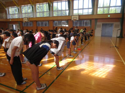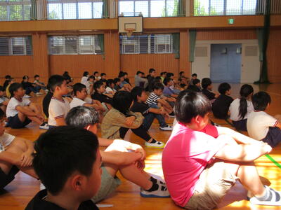 その後、校長先生から前期を終えてお話があり、集中して全児童が聞きながら、全校で前期の伸びを確かめ、後期への希望や意気込みを新たにしていました。