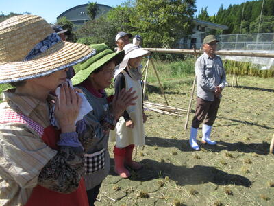 相谷区区長をはじめ区の皆様方や、婦人会の皆様方、地域学校協働活動でのボランティアの方々、保護者や南関町総務課など行政の方々など大勢の方のサポートや指南により、5年生は稲刈りを始めました。