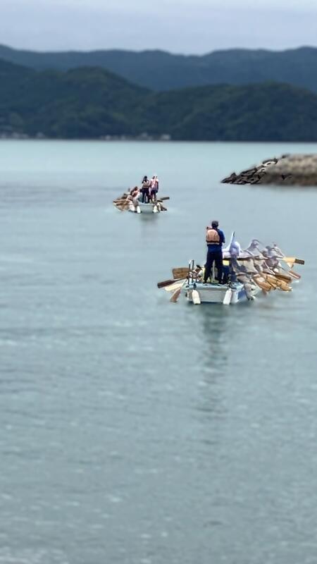 5年生は集団宿泊教室でペーロンに乗り協力して活動しました。