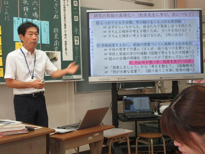 国語科授業の授業研究会には、見立教育センターから下中一平指導主事に講師としておいでいただき、職員の学びを深めました。