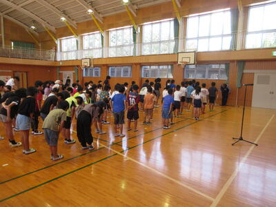 不審者の侵入を受けて、職員が対処するとともに、警察による確保の後に、児童は体育館へ避難しました。