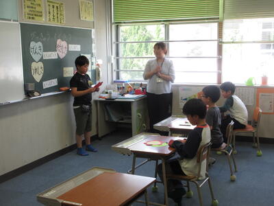 4月19日(土)、3年生は授業参観の授業で、自分のことや同じグループの友達のことを紹介でつないでいく活動を行いました。交流することで友達のことがより深く分かっていきましたね。
