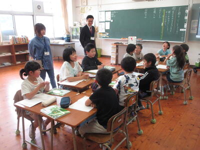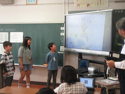 4月19日(土)、4年生は授業参観の社会科授業で、都道府県について学んだことを元にクイズ形式で交流を図っていました。