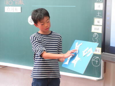 4月19日(土)、6年生は授業参観の算数科授業で、線対称について学習しました。