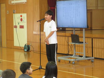 4月19日(土)、5年生は授業参観で自分のことを相手意識を持ち、しっかり相手に伝える自己紹介を行いました。