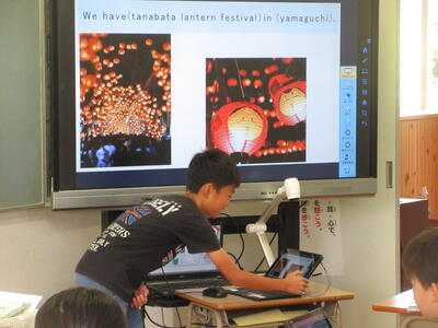 日本の文化のよさについてよく知ってもらうために、日本の名物や名所、行事などについて、内容を整理した上で、自分の考えや気持ちなどを含めて話す学習をしました。