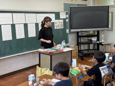 6月25日(水)、6年生は図工科授業で制作した作品を全校児童に披露しました。