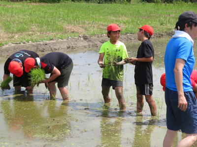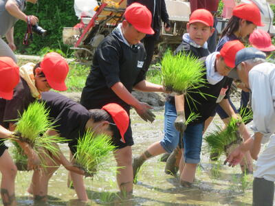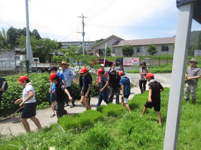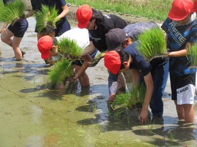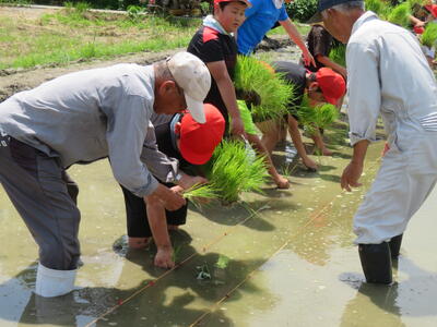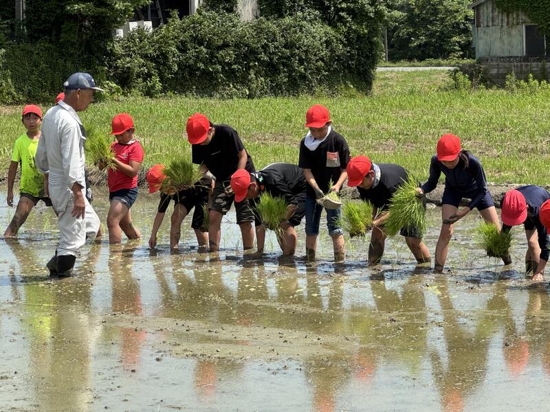 汗をかきながらも笑顔で取り組む子どもたちの姿に、地域の温かさと、協力して一つのことを成し遂げる達成感があふれる時間となりました。今後は稲の成長を見守りながら、秋の収穫にもつなげていく予定です。