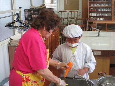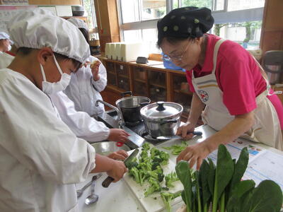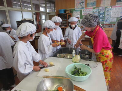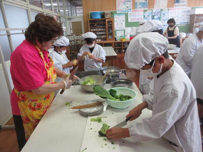 地域学校協働活動の推進員さんや南関町婦人会から教えに来ていただき、調理をすることができました。
