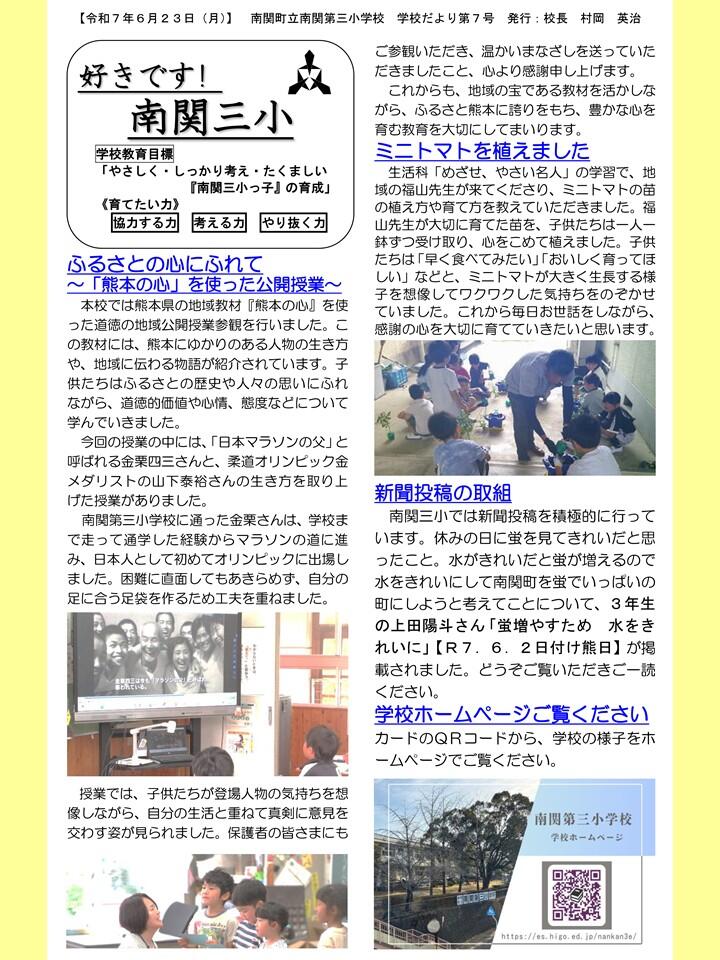 NO.7 250623 学校だより R7「好きです! 南関三小」7号(南関第三小学校).pdf