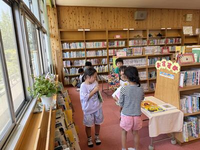 1年生は5時間目に図書室に行き好きな本を探して借りていました。たくさん本を読むことで気持ちも読解力も育っていきます。