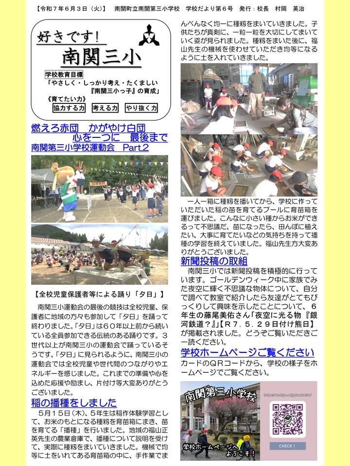 NO.6 250603 学校だより R7「好きです! 南関三小」6号(南関第三小学校).pdf
