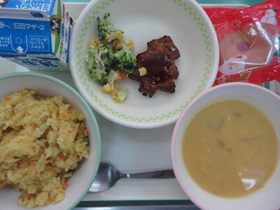 12月22日(火)、今日の給食はクリスマスを感じさせるおいしいメニューでした。