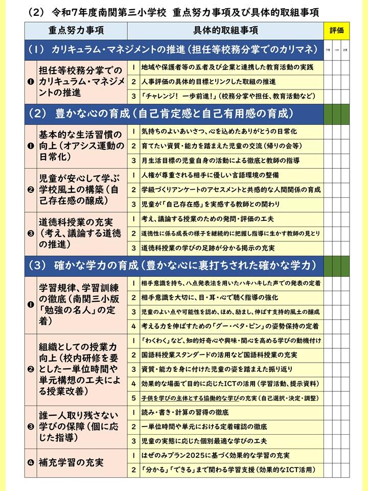 (2) 令和7年度南関第三小学校 重点努力事項及び重点取組事項