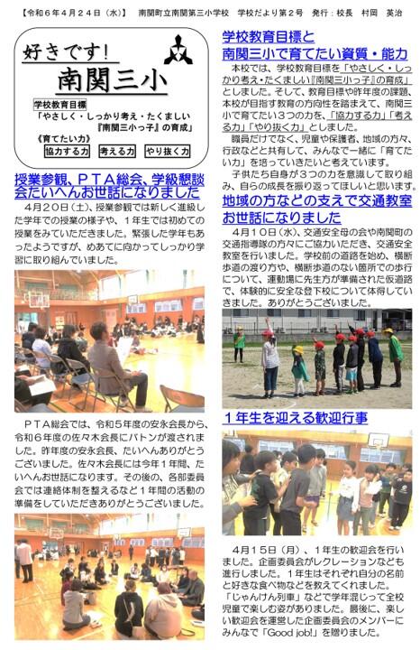 NO.2 240424 学校だより 「好きです! 南関三小」2号(南関第三小学校).pdf