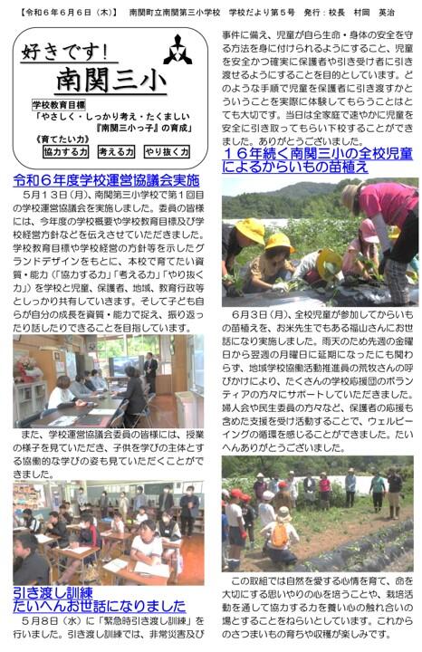 NO.5 240606 学校だより 「好きです! 南関三小」5号(南関第三小学校).pdf