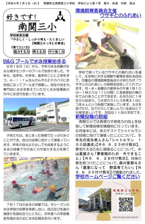 NO.7 250623 学校だより R7「好きです! 南関三小」7号(南関第三小学校).pdf