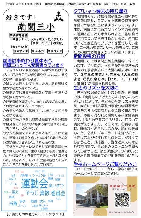 NO.9 240719 学校だより 「好きです! 南関三小」9号(南関第三小学校).pdf