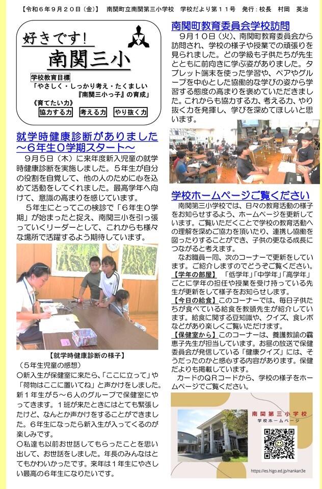 NO.11 240920 学校だより 「好きです! 南関三小」11号(南関第三小学校).pdf