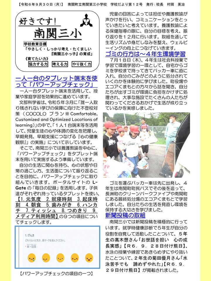 NO.12 240930 学校だより 「好きです! 南関三小」12号(南関第三小学校).pdf