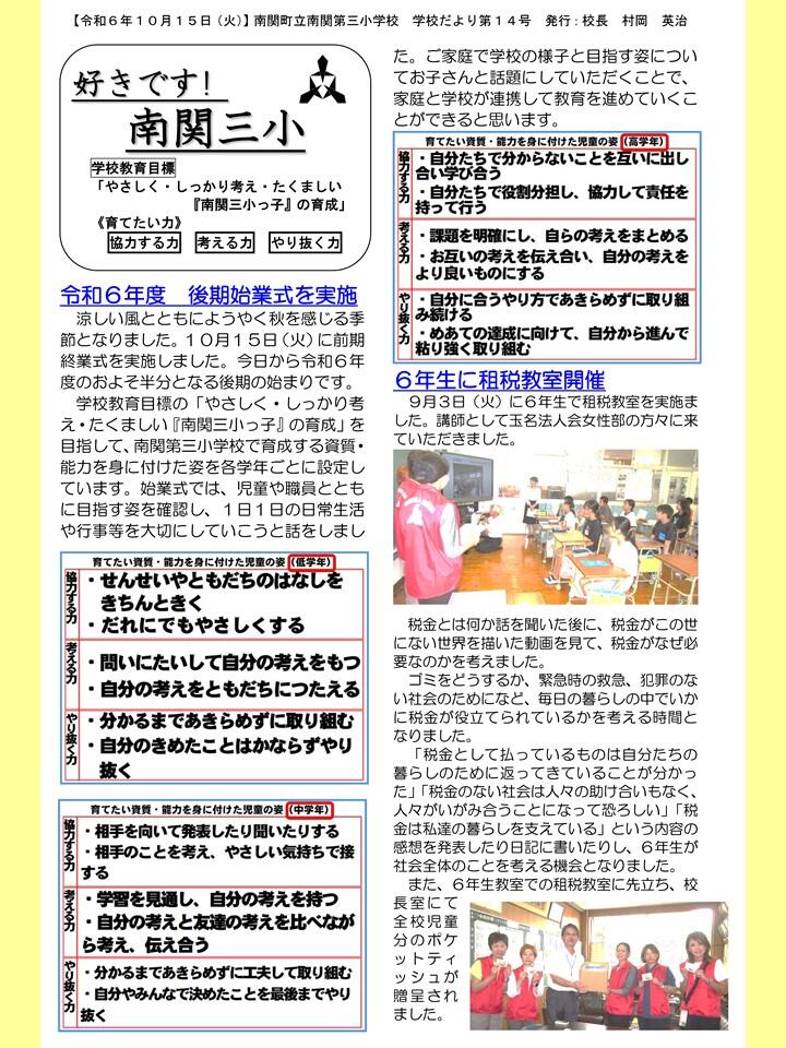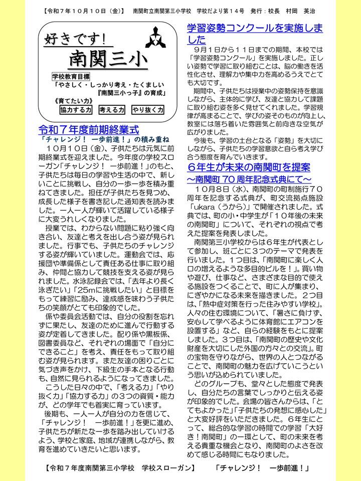 NO.14 251010 学校だより R7「好きです! 南関三小」14号(南関第三小学校)(送付用・HP用).pdf