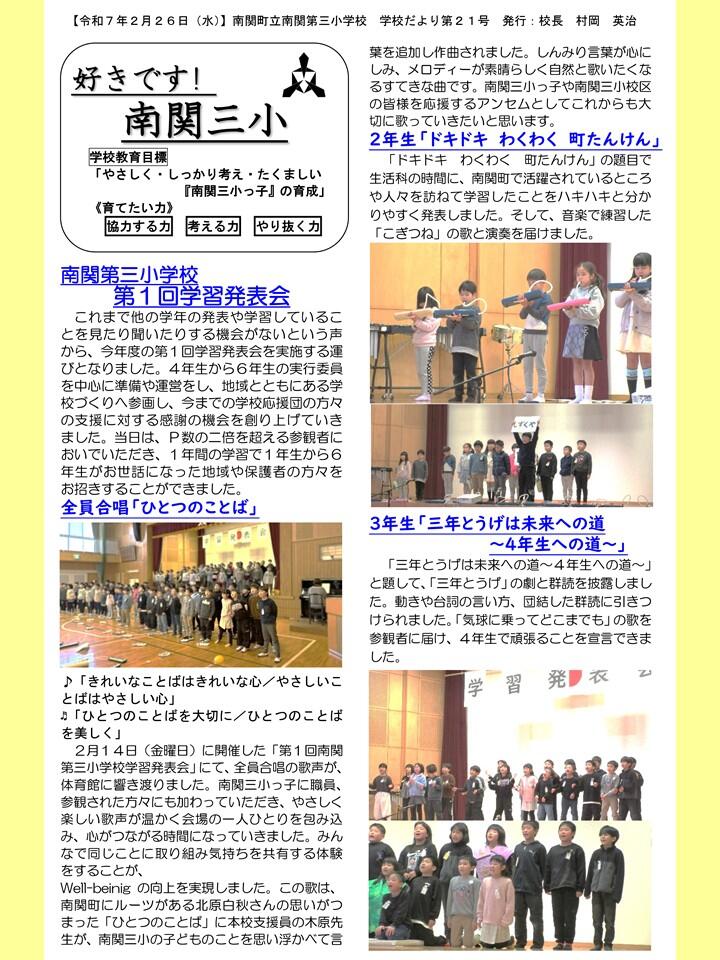 NO.21 250226 学校だより 「好きです! 南関三小」21号(南関第三小学校)【送付用】.pdf
