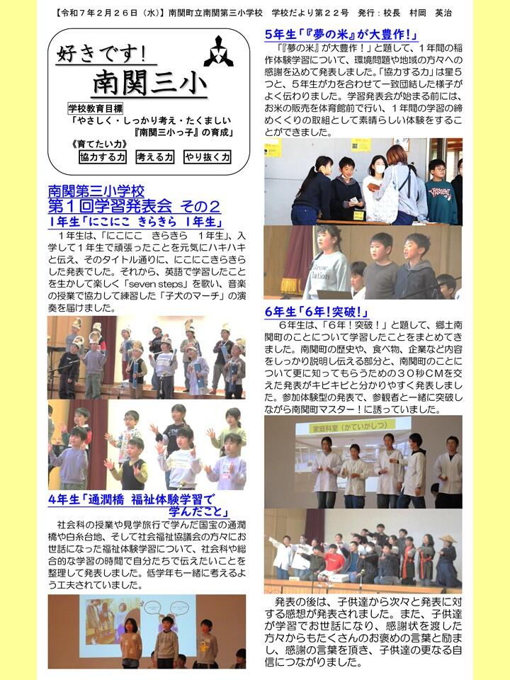 NO.22 250226 学校だより 「好きです! 南関三小」22号(南関第三小学校)【送付用】.pdf