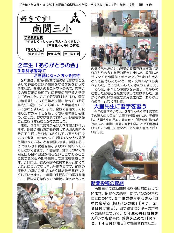 NO.23 250304 学校だより 「好きです! 南関三小」23号(南関第三小学校)【送付用】.pdf