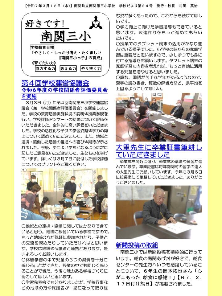 NO.24 250312 学校だより 「好きです! 南関三小」24号(南関第三小学校)【送付用】.pdf