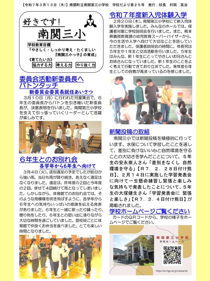 NO.25 250313 学校だより 「好きです! 南関三小」25号(南関第三小学校).pdf