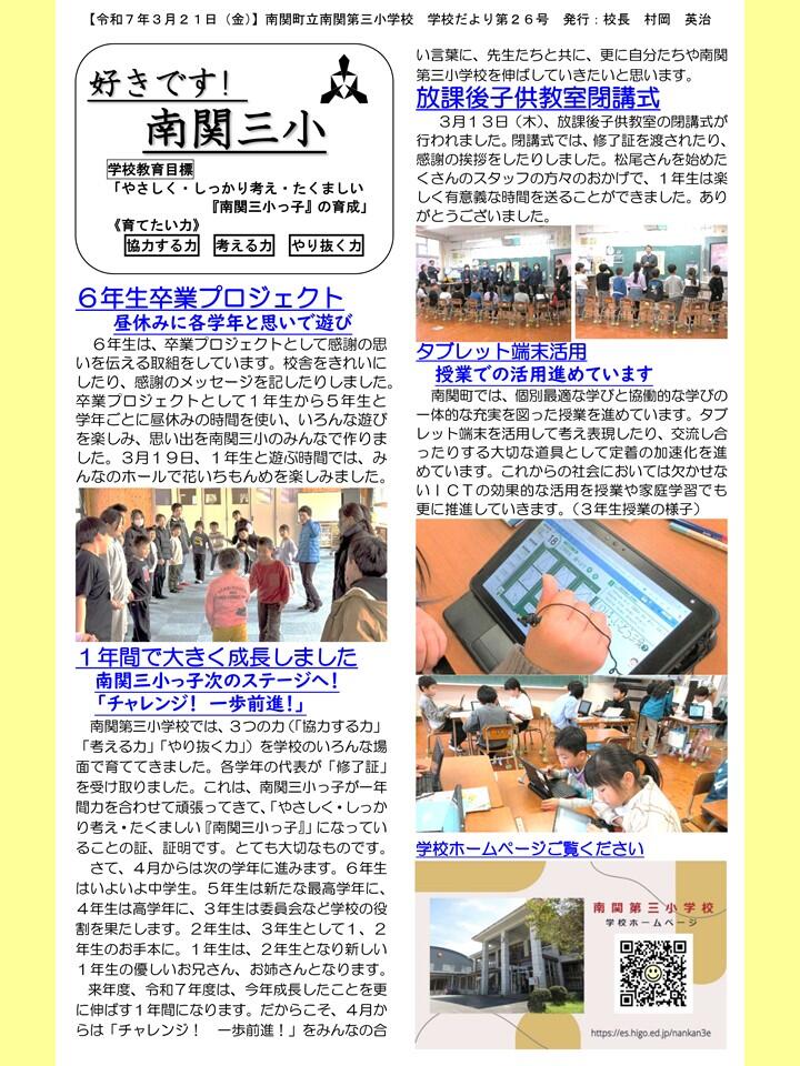 NO.26 250321 学校だより 「好きです! 南関三小」26号(南関第三小学校).pdf
