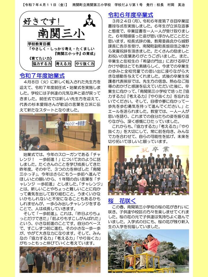 NO.1 250411 学校だより R7「好きです! 南関三小」1号(南関第三小学校).pdf