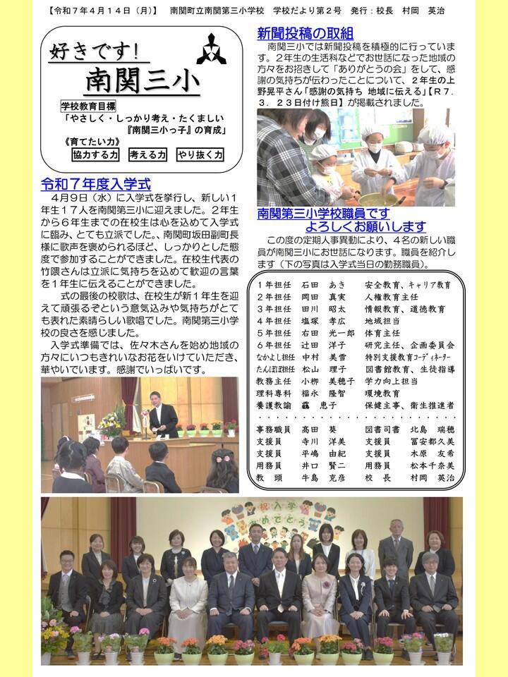 NO.2 250414 学校だより R7「好きです! 南関三小」2号(南関第三小学校)B.pdf