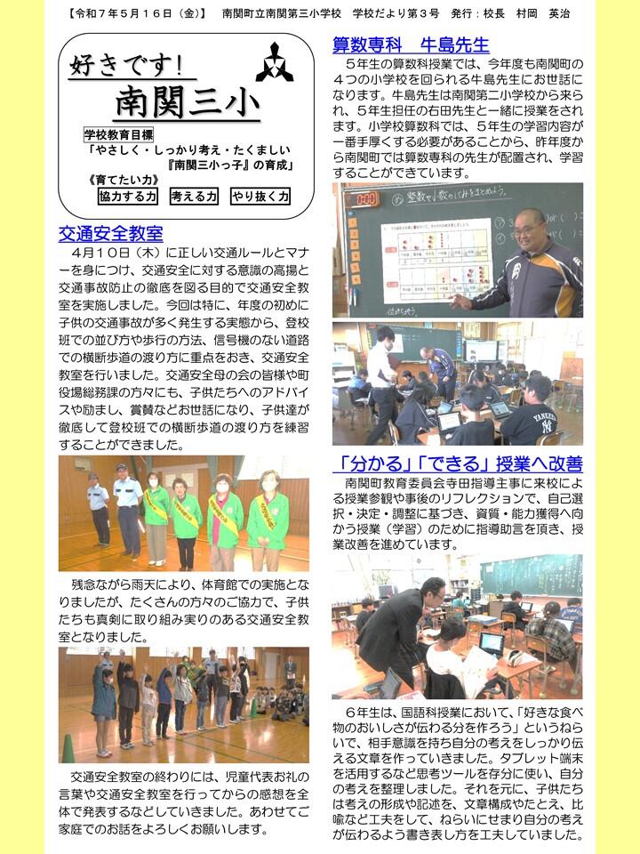 NO.3 250516 学校だより R7「好きです! 南関三小」3号(南関第三小学校).pdf