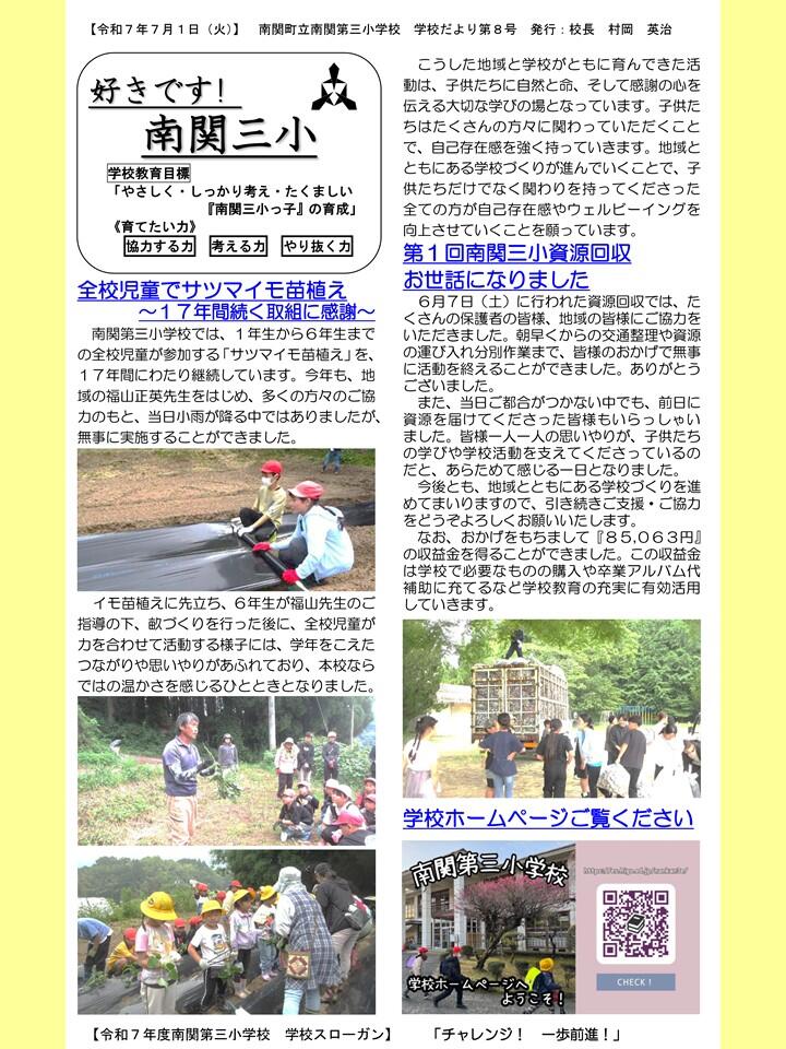 NO.8 250701 学校だより R7「好きです! 南関三小」8号(南関第三小学校).pdf
