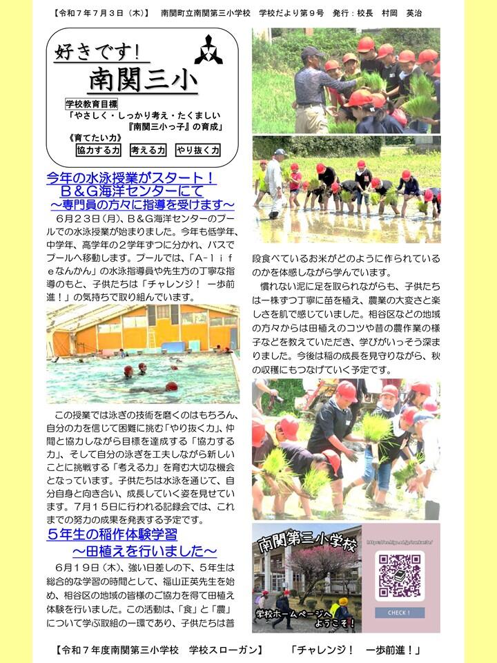 NO.9 250703 学校だより R7「好きです! 南関三小」9号(南関第三小学校)(送付用・HP用).pdf
