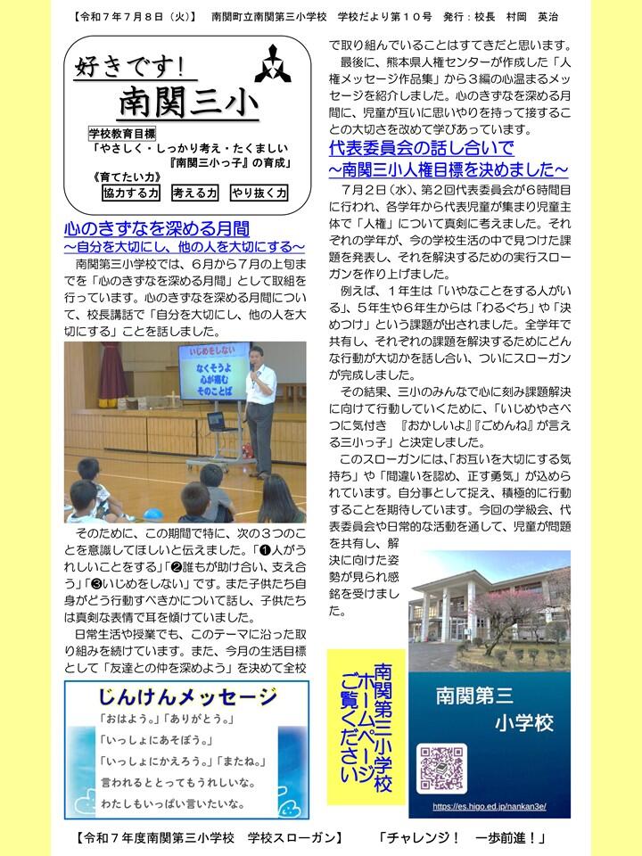 NO.10 250708 学校だより R7「好きです! 南関三小」10号(南関第三小学校).pdf