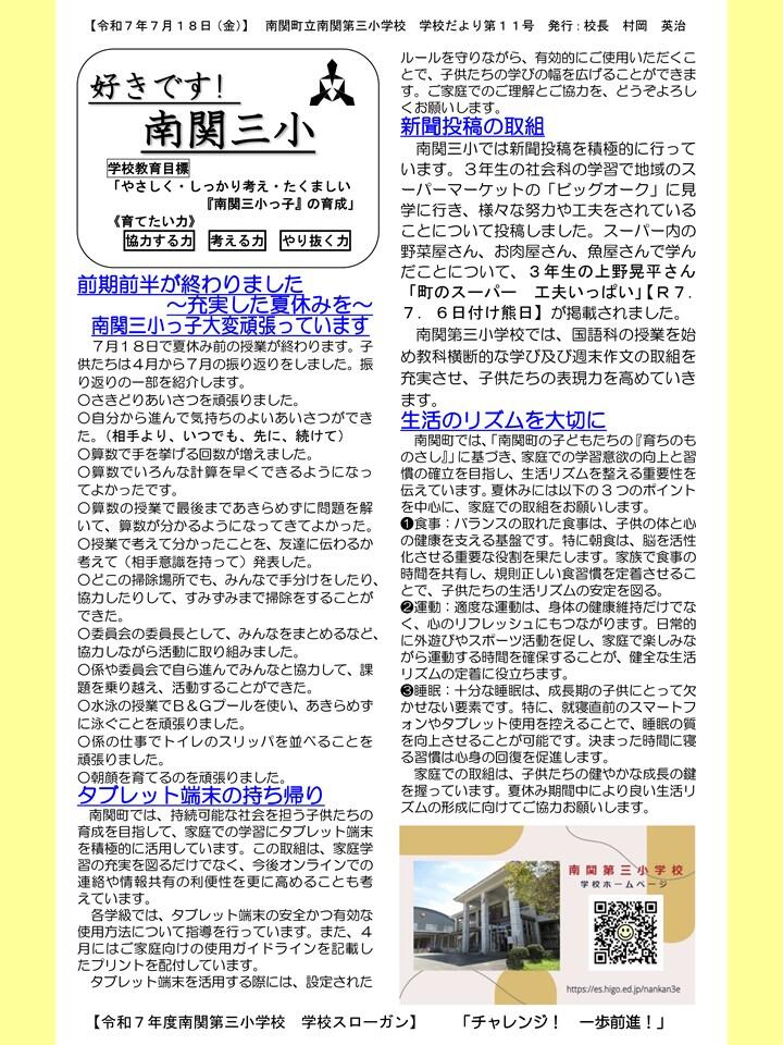 NO.11 250718 学校だより R7「好きです! 南関三小」11号(南関第三小学校)(送付用・HP用).pdf