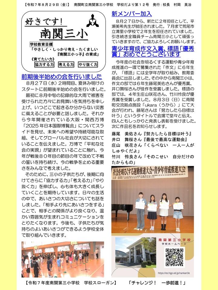 NO.12 250830 学校だより R7「好きです! 南関三小」12号(南関第三小学校)(送付用・HP用).pdf