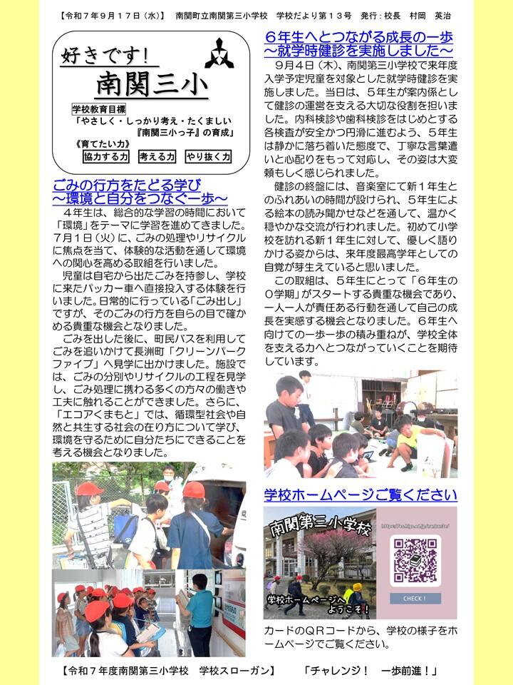NO.13 250917 学校だより R7「好きです! 南関三小」13号(南関第三小学校)(送付用・HP用).pdf