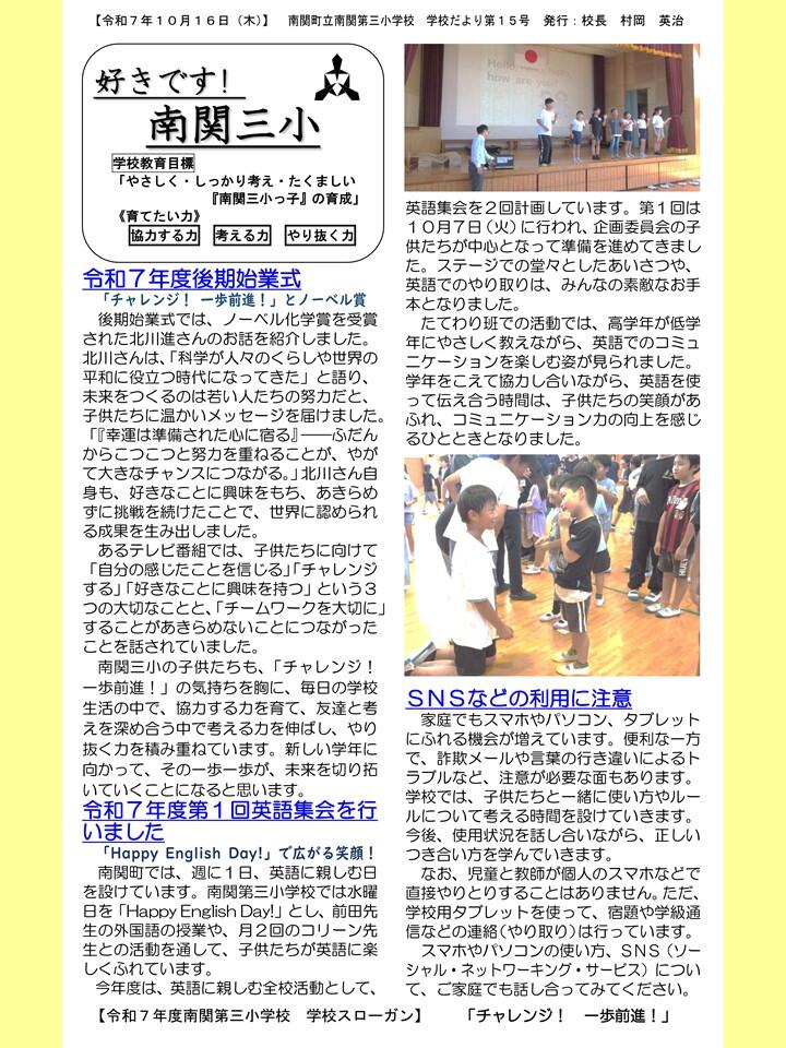 NO.15 251016 学校だより R7「好きです! 南関三小」15号(南関第三小学校)(送付用・HP用).pdf